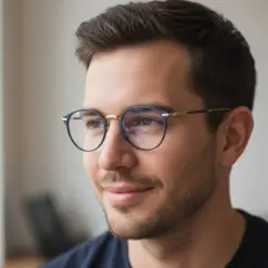 Designed in an elegant oval box shape, it perfectly complements square and angular face shapes, softening facial features for a balanced, intellectual appearance. The Gold & Blue finish adds a sophisticated metallic tone, making it ideal for professionals, students, and style-conscious users alike.
