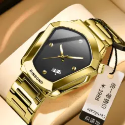 Its unique polygonal case, mirror-polished metallic Gold and Black body, and diamond-style hour markers make it a true statement piece for stylish Bangladeshi men who appreciate luxury with attitude.