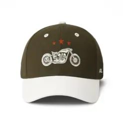 Be the first to review “CP1244 Olive & White Baseball Cap with Vintage Motorcycle Embroidery”