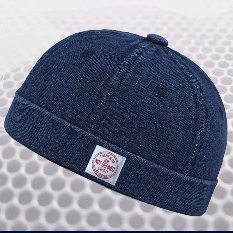 Upgrade your everyday style with this blue denim roll-up brim cap. Designed in a modern beanie-inspired docker style, this cap combines comfort with streetwear fashion. Made from high-quality denim fabric, it offers durability, breathability, and a perfect fit for all-day wear.